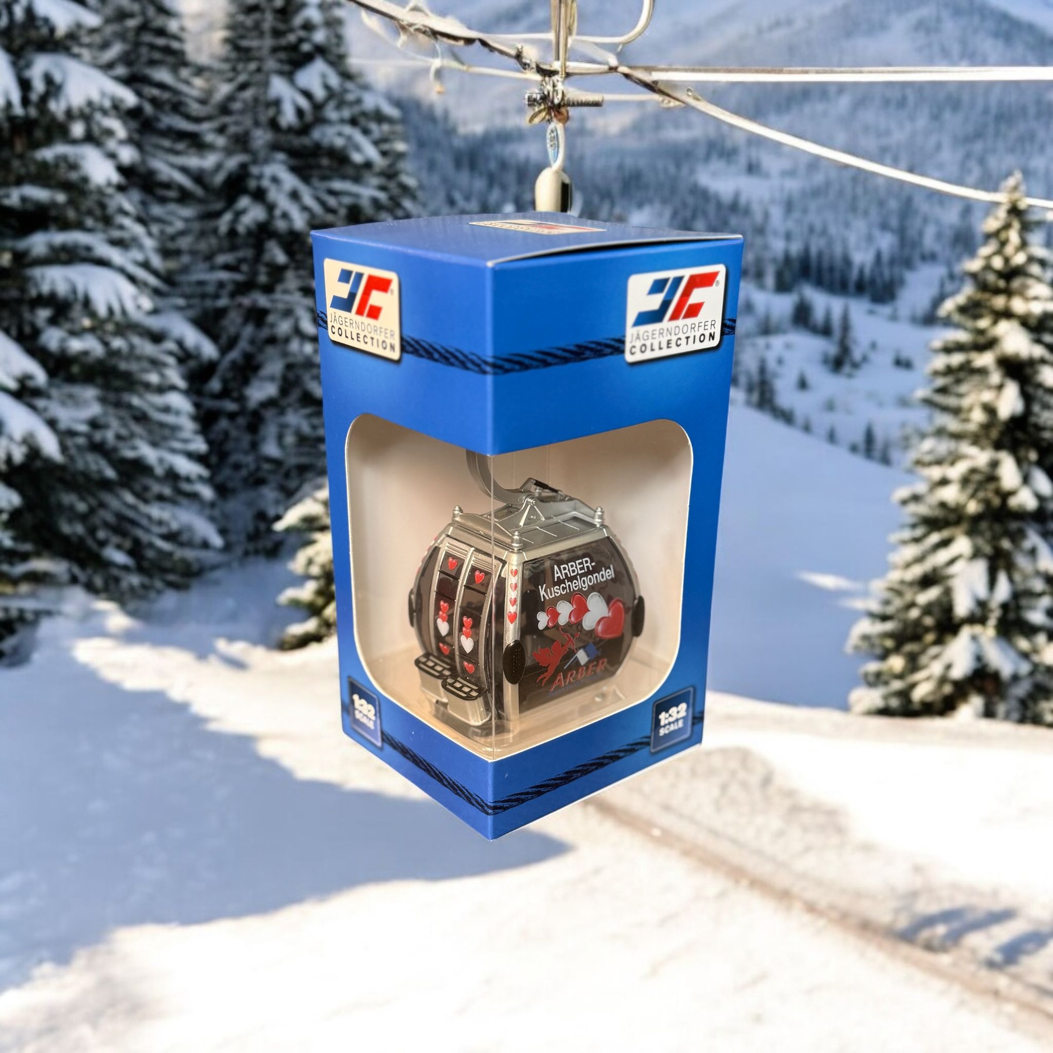 Wenn Erinnerungen eine Form hätten, sähen sie so aus: Die ARBER Kuschelgondel bringt das Gipfelgefühl des Großen Arber in Dein Zuhause – detailgetreu im Maßstab 1:32, mit Herz-Design und offiziellem Arber-Branding. Ein Stück Bergromantik zum Hinstellen, Aufhängen oder Verschenken.